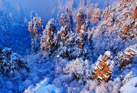 張家界三千奇峰、八百秀水,用“雄、奇、險(xiǎn)、秀、幽”5字來概括,早已得到大眾的公認(rèn)。張家界的山水,稱得上是風(fēng)景山水的經(jīng)典;游張家界,則成為人生的宿愿和幸事。飽覽張家界,可謂四時皆宜:春天,是大地充滿靈氣的季節(jié),張家界此時的山水,充滿著生氣,充滿著向往,它的每一座山峰,每一道水溝,都舉著搖曳多姿的花朵,是表示對游人的歡迎,更是表達(dá)一種生命的意境;夏天,是空氣膨脹欲望的季節(jié),張家界此時的山水,充滿著遐想,充滿著誘惑,它的一草一木,一枝一葉,都滴瀉著生命的翠綠,裝飾著每一座山峰,蘊(yùn)含著人生的幻想和追求;秋天,是星月喜慶豐收的季節(jié),張家界此時的山水,一樣地走向深厚,一樣地寫滿沉穩(wěn),它的山山嶺嶺,它的溝溝壑壑,在翠綠的底色中亮出火一樣的紅葉,抒寫著熱情,歌吟著成熟與奔放;冬天,是風(fēng)花雪月般詩意的季節(jié),張家界此時的山水,冷峻中透著溫情,蒼茫里飽含著魄力,它的一座座石峰,它的一棵棵巖松,都是一個個冰清玉潔的世界,它們都玉樹臨風(fēng)般燃燒著,引發(fā)著游客的激情,而那些冰雪覆蓋的小溪,流水在動情地吟唱,就像有情人心中的歌吟,最易撩動愛人的衷腸。我愛張家界四季的景色,但我更愛張家界的冬天,我愛在冬天里與張家界的山水對話,我愛在冬天里到張家界的山水間去暢游,去作一種思想的飛翔! 張家界的冬天并不寒冷,這主要是因?yàn)樗闹芏喔呱剑@里的冬季多為晴朗天氣,故區(qū)域小氣候較為溫暖,暢游張家界無須冒嚴(yán)寒之苦,又可避開歷酷暑之難。即使是雨雪天氣,因?yàn)榫皡^(qū)是一個高出的整體平臺,小地形則是一塊盆地,所有的景觀就好比一個放大的盆景,所以在游歷觀賞的行程中,并無寒氣逼人、冷酷加身的感覺。一旦遇上陰雨天氣,景區(qū)因海拔較高,山地氣候又特別明顯,放眼望去,枝枝葉葉便都成了水晶般的世界,精靈奇巧的霧凇千姿百態(tài),笨拙憨厚的灌木清純天成。若是有雪降臨,不管大小,山上立即便會是一個白雪皚皚的世界,恰似翡翠盤中堆砌著白玉,那些巖壁上的枯枝古樹,此時又煥發(fā)青春,讓人不由得想起兩句古詩:“春來苔作葉,冬至雪為花。”我曾陪《羊城晚報(bào)》的一位朋友冬游張家界,她興致極高地滿山里跑,她說:“此山此景,人生頭一回遭遇,可望而不可求,遺憾的是沒有看到雪境里的張家界。”真是老天作美。第二天,我們在山上走著走著,天空便飄起了雪花,頃刻之間,便是一個雪花飛舞的世界,大地上石峰上樹上身上的雪花,就像火苗一樣點(diǎn)燃了朋友的激情,她情不自禁地面對著山野吟哦起來——親切而新鮮的雪花,落下來,在夢幻深處,在心靈深處,就像飄落的雪白的火焰,溫暖我人生的境界點(diǎn)燃我生命的激情……雪花落下來,落滿大地、石峰和樹冠豐腴著山峰、溝壑和想象為詩意和行程增加了厚度,雪清新,溫暖,純潔,冷冽它是自然的語言,火辣辣的語氣中帶著熱情,還有看不見面的堅(jiān)硬和銳利…… 作為一個南方的朋友,見到如此美妙的雪的世界,她的激動和驚喜,完全是我意料中的事;而讓我驚奇的是從不作詩的她,竟然意隨興致的吟唱出如此語意雙佳的詩作來。 雪中游張家界,你無需為安危著想,景區(qū)的工作人員,無論何時何地,都是游客的保護(hù)神。在我的記憶中,深深地記得2000年正月初一的那天,我與攝影界的朋友游張家界,每到一處,各種接待工作都井然有序,清路工人硬是在一尺余厚的積雪上,清出了通往每一個景區(qū)景點(diǎn)的道路,每一處易出事故的地方,都有工作人員守護(hù)。在天子山頂,我們遇到一群臺灣游客,他們高興地指著冰天雪地的景區(qū)景點(diǎn)說:“張家界山美水美人更美,張家界的雪景則是美上加美,每一座石峰都冰清玉潔,每一棵樹都玉樹臨風(fēng),真是一個美妙的雪世界啊!” 張家界的森林覆蓋率達(dá)99.7%以上,植物科目種類比整個歐洲大地還多。因此,冬游張家界,滿眼里仍然是綠色的世界,這就是它與北方景觀的區(qū)別。即使是冰天雪地,那臨風(fēng)玉樹,那挺立的石峰,透過冰雪,仍然會展現(xiàn)出綠色,就像一個翡翠的世界。置身于這樣的景致里,使你的感覺不寒不躁,如早春二月,心如春芽。這時,你心隨景移,興隨景起,你會由衷地感嘆:“這世界多么美妙,真是個賞雪景的勝地。”? 冬天去張家界賞雪景,游客不用自己為交通食宿多操心。如今去張家界,公路、鐵路、航路三位一體,十分方便,市內(nèi)去景區(qū)也已修成了高等級公路,返往暢通無阻。旅游通行是景區(qū)旅游,市內(nèi)住宿,各類檔次的賓館任由選擇。盡管景區(qū)山高溝深,路陡程長,但游客無需為勞累擔(dān)憂,景區(qū)內(nèi)已建成兩條上山索道和一條上山升降梯,上黃石寨、天子山、袁家界等核心景區(qū),只是一瞬間的事情。即使在山上走累了,隨處可以叫一架滑竿,轎夫都是些訓(xùn)練有素的精壯青年,他們可以抬著你慢悠悠地一邊瀏覽著雪中的景致,還會一邊為你講些民俗或是一些山中的故事。他們會為你噓寒問暖,寧肯自己多吃些苦,多受些累,他們也會做到讓游客舒心滿意。這時,你還不心曠神怡么?你渾身會涌起一股股溫暖的感覺來。 朋友,下雪時,到張家界觀雪去,那是一場雪白的火焰,將會點(diǎn)燃你生命的激情和幻想,那些個性的石頭和倔強(qiáng)的樹,那里的民俗風(fēng)情和鄉(xiāng)民
