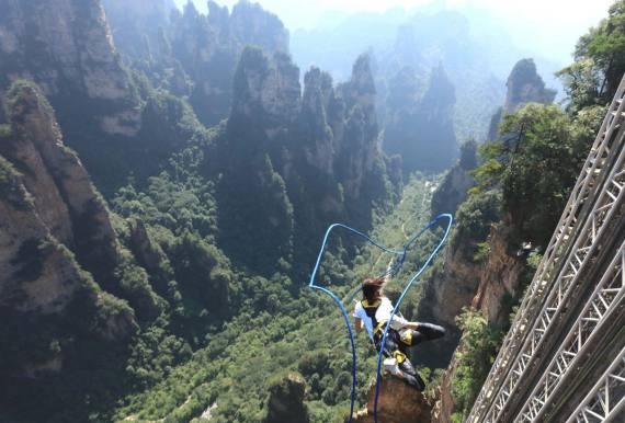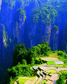 張家界,是湖南一個著名的風(fēng)景區(qū),一座天然的森林公園。黃石寨、天子山、金鞭溪等勝境,是令游人心馳神往之地。在我們出發(fā)之初,心就早已高高飛揚(yáng),五個多小時的顛簸終于把我們載到了目的地,導(dǎo)游是一個年輕的女孩子,一見面就放開歌喉唱了首當(dāng)?shù)赝良易宓母柚{,歌聲婉轉(zhuǎn)動聽,一下子讓我們領(lǐng)略到了鄉(xiāng)村